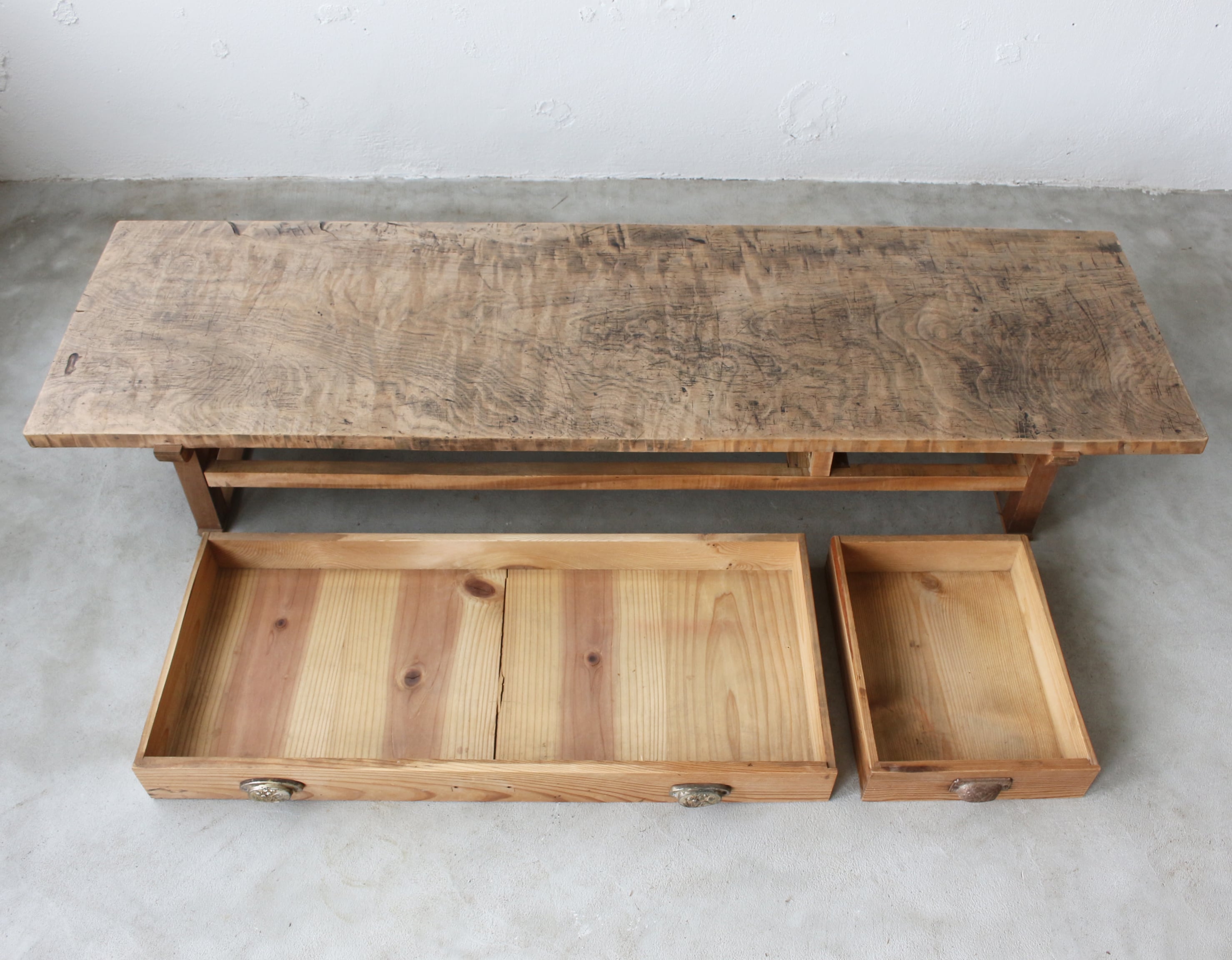 引き出しがサイズ違いで、左右の引手が少し違うのも好みです。