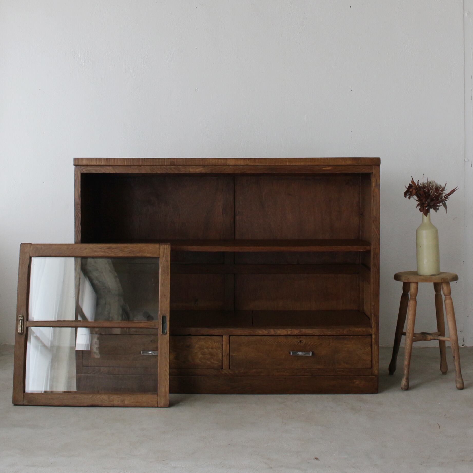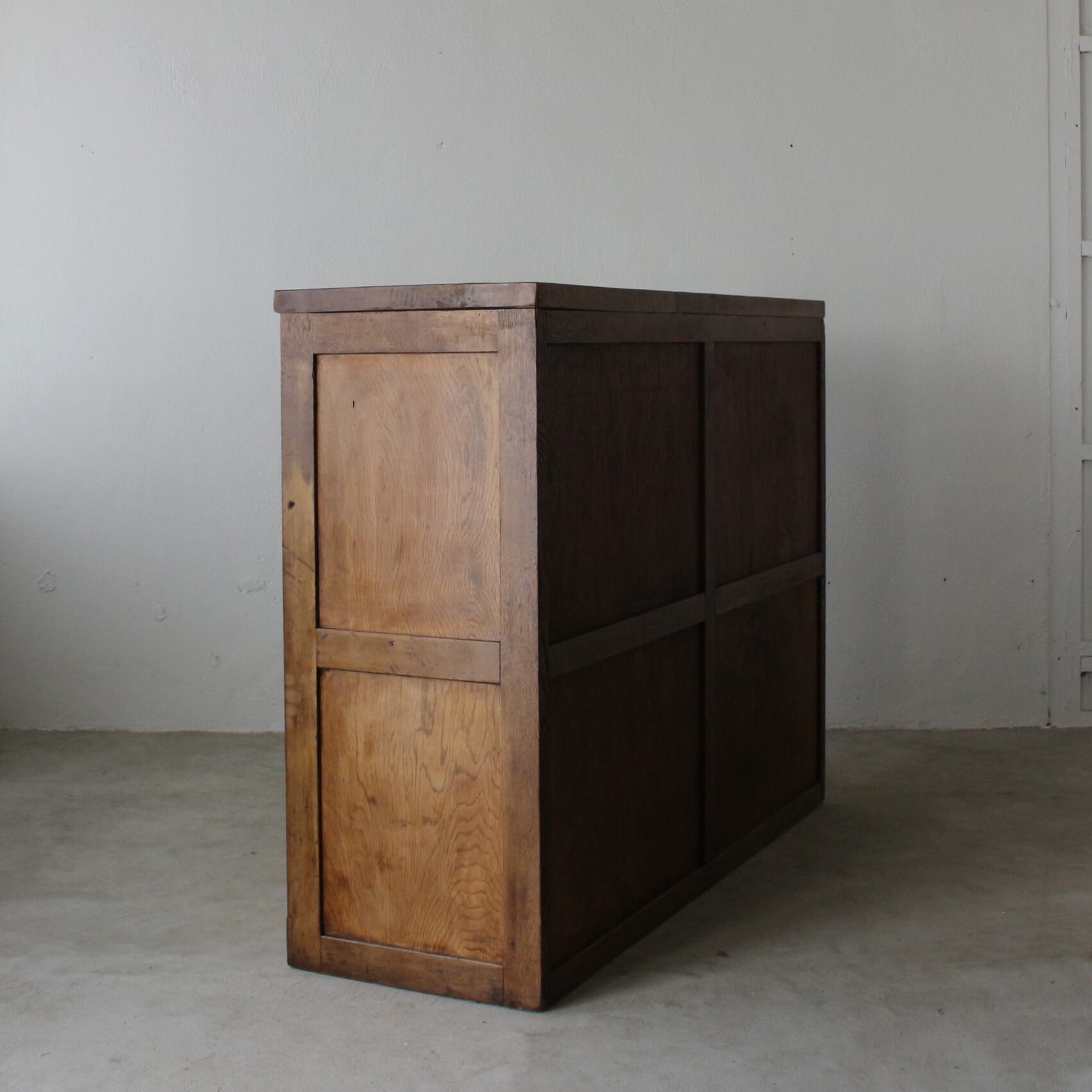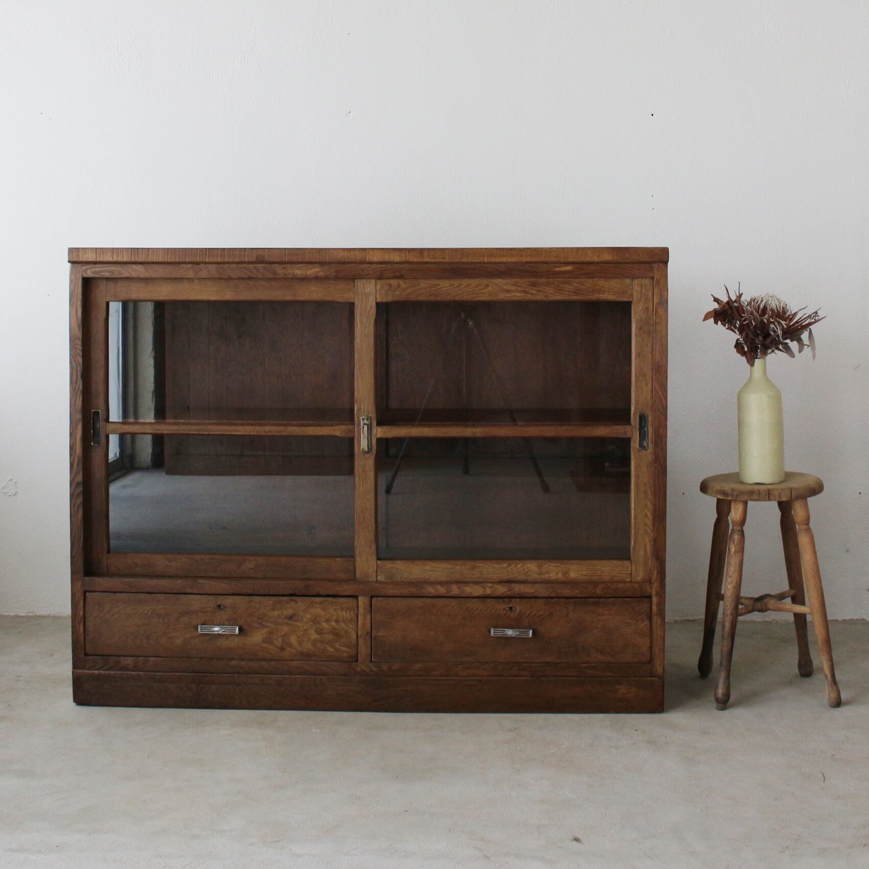 天板の厚めな重厚な造りも、ガラス戸の枠の面取りの意匠も好みです。