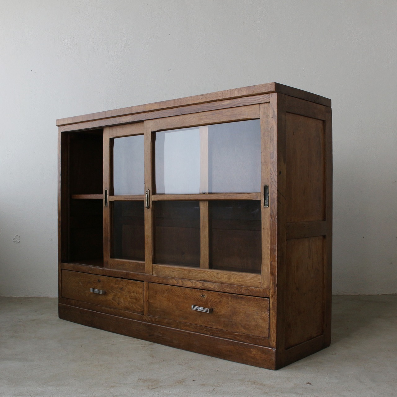 引き戸タイプのガラス戸棚です。
